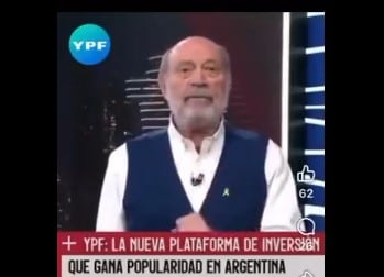 En dichas publicaciones menciona la plataforma de inversión con la imagen de Leuco, superpuesta por una voz alterada por computadora. “La plataforma de inversión de YPF está ganando popularidad en la Argentina de hoy. Y no es para menos. Cada vez son más las personas que descubren nuevas oportunidades de ingresos y multipican sus ahorros”, señalaba.
